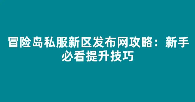 冒险岛私服新区发布网攻略:新手必看提升技巧