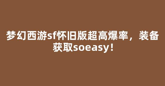 在当前众多经典网游中,梦幻西游sf怀旧版凭借其独特的玩法和丰富的内容备受玩家喜爱。尤其是在装备获取方面,其超高爆率设计大大提升了玩家的游戏体验,让装备升级变得so easy!下面,我们就来详细探讨一下梦幻西游sf怀旧版如何通过超高爆率系统,让你轻松获得心仪的极品装备。