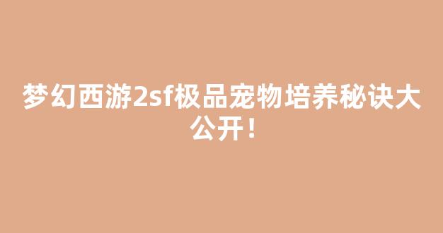 在《梦幻西游2sf》的世界里,拥有一只极品宠物不仅能提升玩家的战斗力,还能为游戏体验增添无穷乐趣。然而,如何才能培养出一只无坚不摧、技能全面且属性卓越的极品宠物,成为许多玩家孜孜以求的目标。今天,我们将深入解析梦幻西游2sf极品宠物的培养秘诀,助你轻松打造梦幻中的最强搭档。