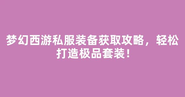 在梦幻西游私服中,装备的获取和打造是每位玩家提升战力、享受游戏乐趣的重要环节。一个强力的极品套装不仅能够显著提升角色属性,还能让玩家在PK、任务和副本中如虎添翼。本文将为大家详细解析梦幻西游私服中装备的获取途径和打造技巧,助你轻松拥有心仪的极品装备。