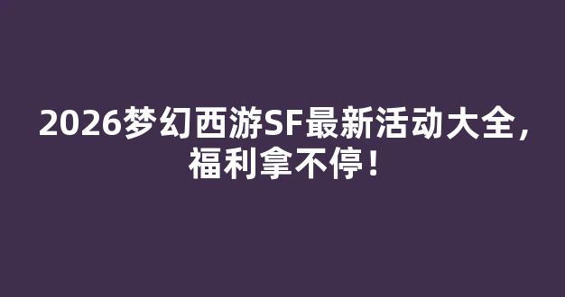 2026年,梦幻西游SF迎来了全新一波精彩纷呈的活动盛宴,带给广大玩家前所未有的福利和乐趣。在这个全新的游戏季节里,无论是新手玩家还是资深老玩家,都能在丰富多样的活动中找到属于自己的快乐,轻松领取丰厚奖励,提升游戏体验。下面,我们将为大家详细介绍2026梦幻西游SF最新活动大全,助你在游戏中畅享无限精彩,福利拿不停!