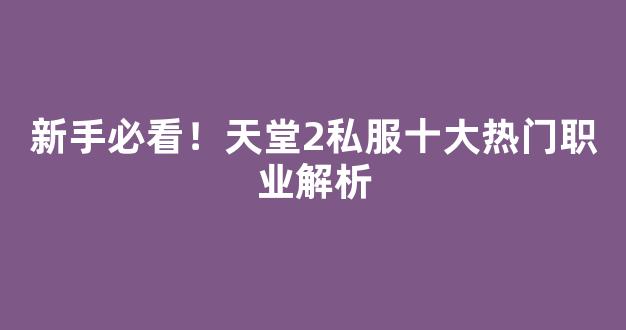 在天堂2私服的世界中,职业的选择直接影响玩家的游戏体验和成长速度。对于新手玩家来说,了解各个职业的特点和优势,有助于快速融入游戏,享受冒险的乐趣。本文将详细解析天堂2私服中最热门的十大职业,帮助大家找到最适合自己的角色定位。