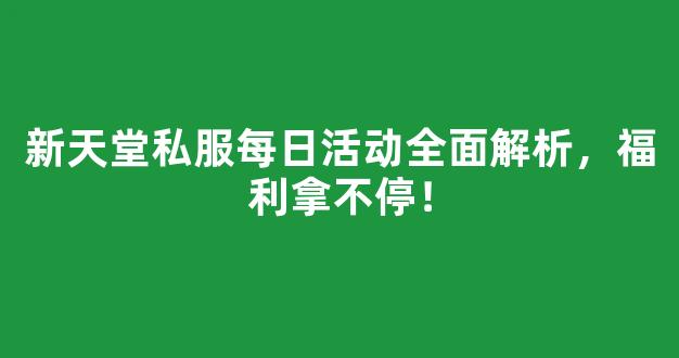 在当前网络游戏盛行的时代,私服作为一种独具特色的游戏体验,深受众多玩家的喜爱。而“新天堂私服”凭借其丰富多彩的每日活动和丰厚的福利设置,更是成为玩家们争相体验的热门选择。本文将全面解析新天堂私服的每日活动机制,帮助玩家们更好地规划游戏时间,轻松获取海量福利,享受游戏乐趣的同时,实现实力快速提升。