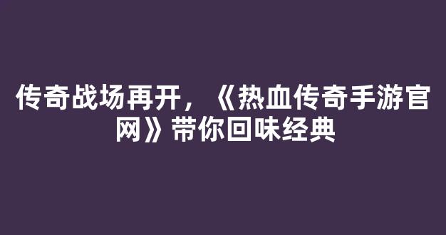 在游戏世界中,有一些经典作品因其独特的魅力和深厚的文化底蕴,历经岁月洗礼依然焕发着不减当年的光彩。《热血传奇》便是这样一款陪伴无数玩家走过青春岁月的传奇之作。如今,随着《热血传奇手游官网》的重磅上线,传奇战场再次开启,经典回忆得以完美再现,带领玩家们重新体验那段热血沸腾的岁月。