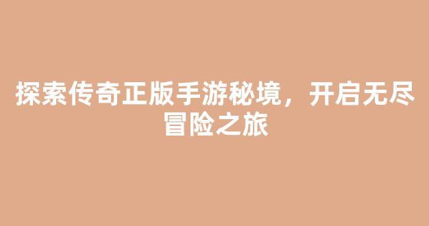 在这个快节奏的时代,手游已经成为许多人娱乐、放松的重要方式。而《传奇》系列作为经典的动作角色扮演游戏,其正版手游版本更是吸引了大批忠实玩家。穿越时空的界限,探索传奇正版手游中的秘境,成为玩家们追求刺激与挑战的全新旅程。每一次进入秘境,都是对自身实力的考验,更是冒险精神的无限释放。