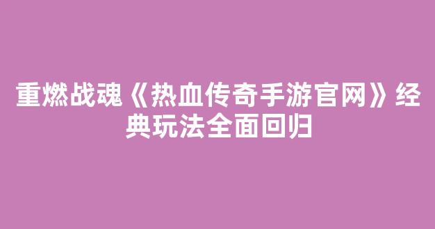 在如今手游市场竞争日益激烈的环境下,许多经典游戏凭借独特的游戏体验和深厚的粉丝基础,依然焕发着勃勃生机。《热血传奇手游官网》正是这样一款游戏,凭借其丰富的玩法和怀旧的画面,吸引着无数玩家的关注。而最新推出的《重燃战魂》版本,更是将这款经典游戏的玩法全面回归,让玩家们重新感受到当年那份激情与热血。