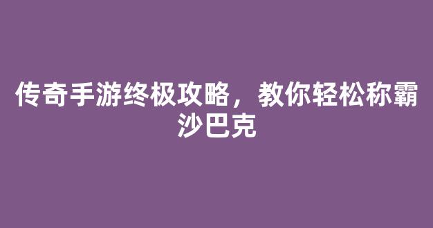 在传奇手游的浩瀚世界中,沙巴克一直是无数玩家梦寐以求的战场。这里不仅汇聚了顶尖的公会和高手,更是荣耀与财富的象征。想要在沙巴克称霸,掌握正确的策略和技巧至关重要。本文将从角色养成、装备选择、团队协作及战术布局等多方面,为你提供一份详尽的终极攻略,助你轻松登顶沙巴克王者宝座。
